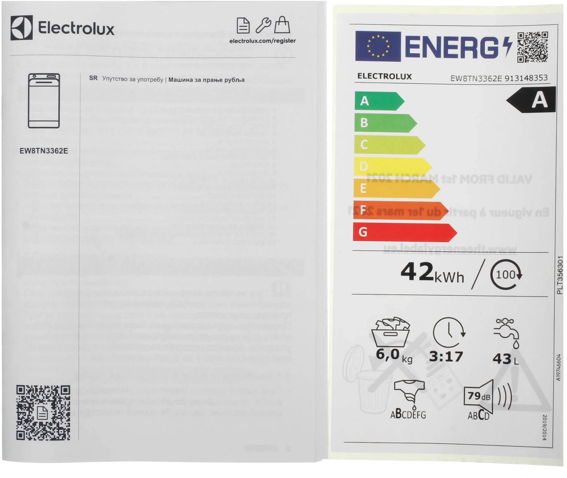 Стиральная машина Electrolux EW8TN3362E пан.англ. класс: A загр.вертикальная макс.:6кг белый