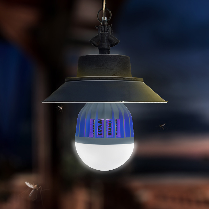 Антимоскитная лампа REXANT со стандартным цоколем E27 сочетает в себе сразу 2 прибора: светодиодную лампочку для освещения и уничтожитель комаров. Прибор привлекает насекомых УФ свечением и мгновенно убивает их током. Может использоваться как внутри помещений, так и снаружи, например, для освещения крыльца дома или прилегающей территории. Подходит, практически, под любые виды осветительных приборов. Лампа имеет съемную крышку, благодаря чему ее удобно чистить.Режим работы1-й режимПри первом включении лампы будут одновременно работать осветительная часть и уничтожитель комаров. В этом случае уничтожитель работает в стандартном режиме.2-й режимДанный режим интенсивно уничтожает насекомых, лампа при этом не светит. Для перехода в режим необходимо включенную лампу (1-й режим) выключить и сразу включить, в течение 1-2 секунд. Осветительная часть выключается (белый свет гаснет) и начинает работать только уничтожитель (синее свечение).Технические характеристики:Тип лампы: светодиоднаяНапряжение питания: 220 ВПотребляемая мощность: 10 ВтСтандарт цоколя: E27Срок службы: 30 000 часовЦветовая температура: 6500 K Размеры лампы: 95×95×172 мм
