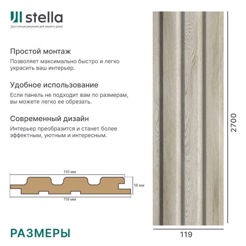 Стеновая панель Стелла Про Beats Standart Дуб Грей
