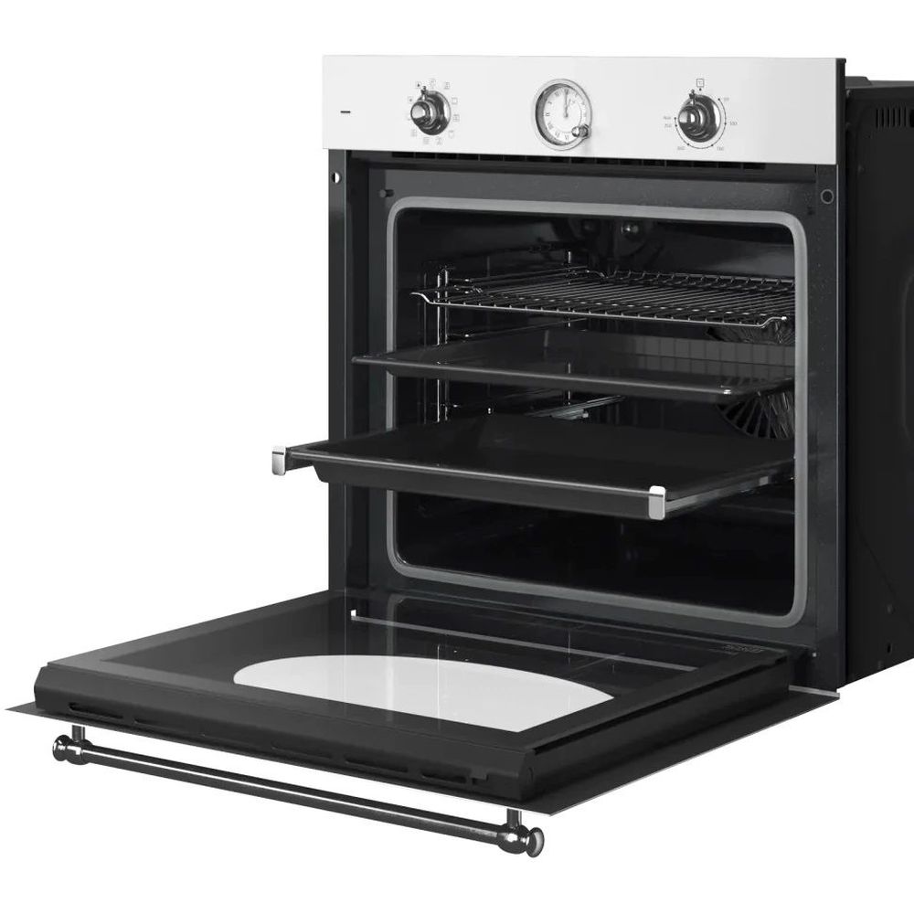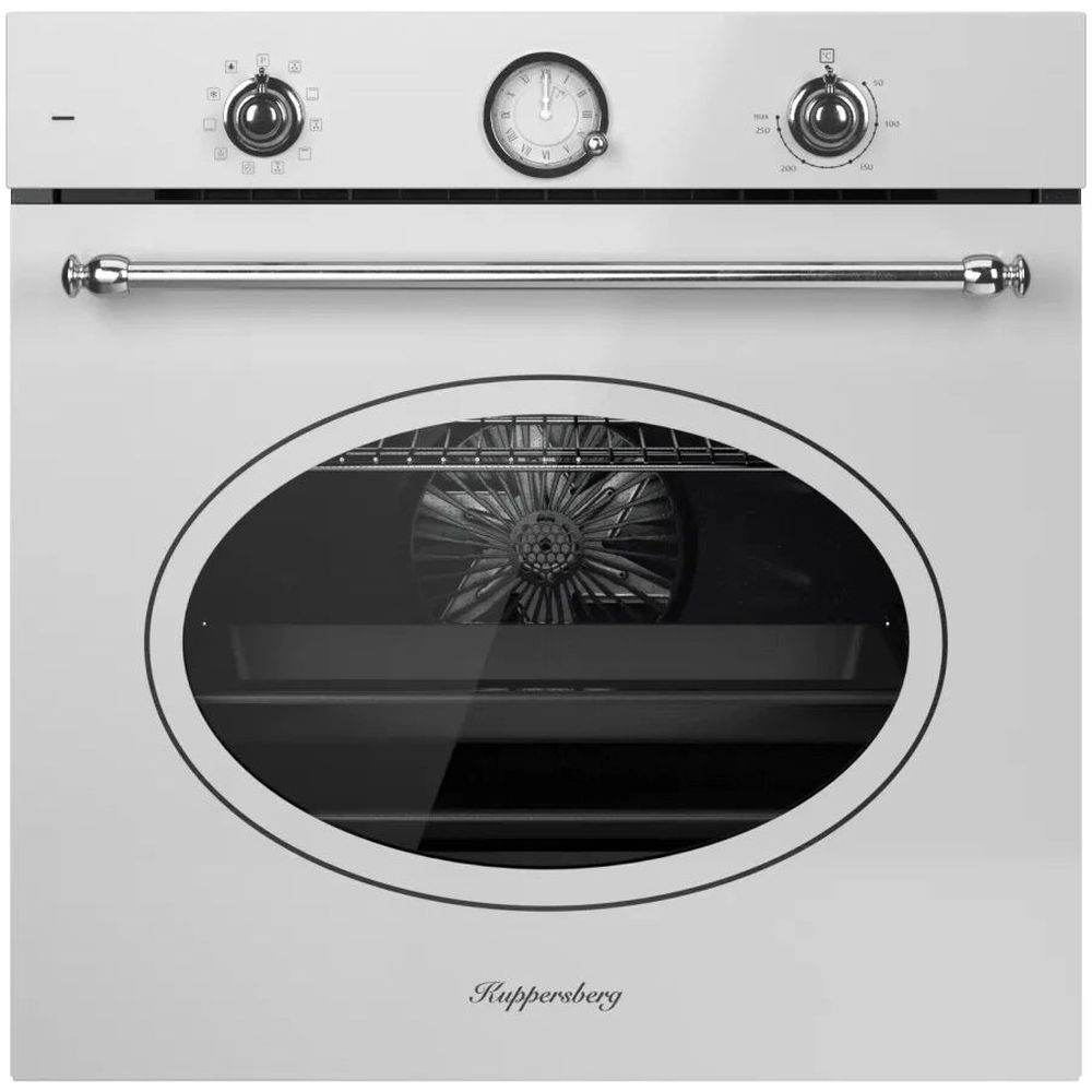 Встраиваемый духовой шкаф KUPPERSBERG/ Встраиваемый духовой шкаф KUPPERSBERG, электрический, Classic, 60 см, объем 80 л, 10 режимов, 6 автропрограмм, механическое управление, макс. Температура 255 градусов, дисплей, механический таймер, телескопические направляющие на 1 уровень, цвет белый, цвет фурнитуры серебро