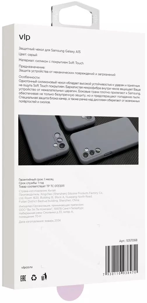Чехол VLP Aster, для Samsung Galaxy A15, серый (1057068)