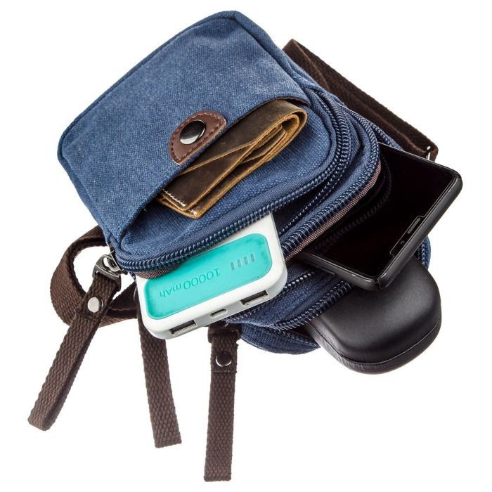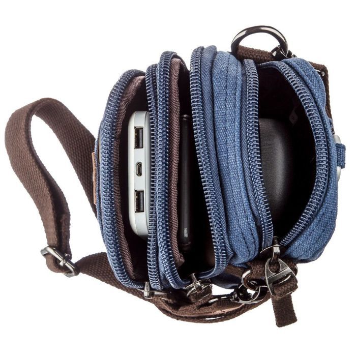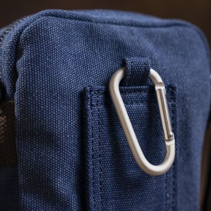 Особливостікарабін на ремінь та петелька на пояс на тильній стороні , знімний текстильний ремінь , кишеня на блискавці, на лицьовій стороні , кишеня відкритого типу на лицьовій стороні