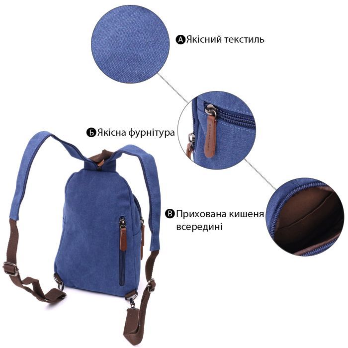 Сумка Vintage Для чоловіків через плече з ущільненою спинкою Синя (22176)