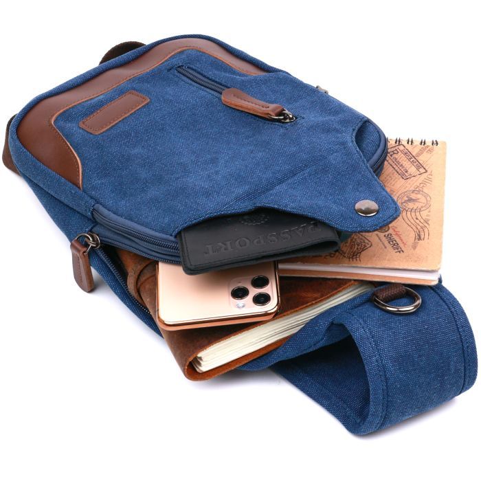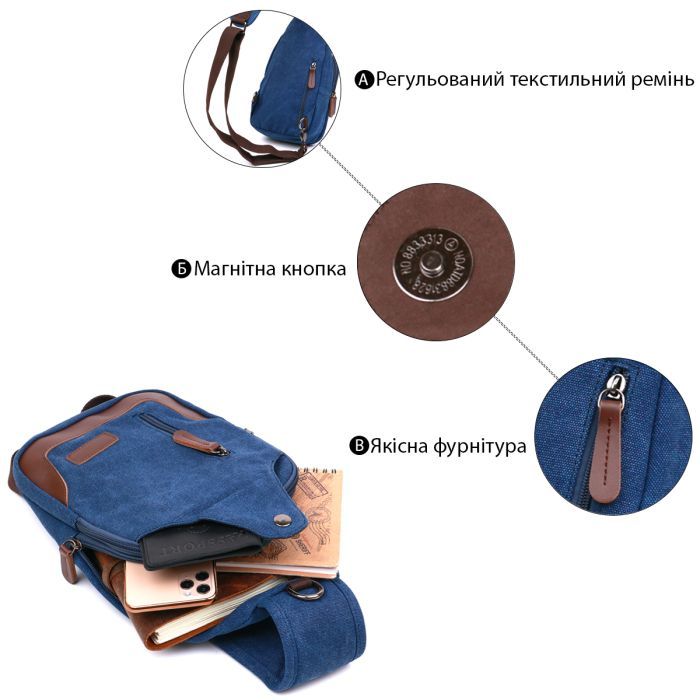 Сумка Vintage Текстильна чоловіча через плече Синя (20387)