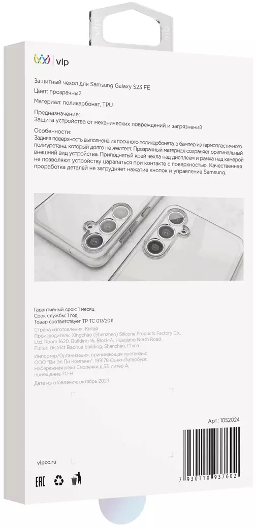 Чехол VLP Crystal case, для Samsung Galaxy S23 FE, прозрачный (1052024)