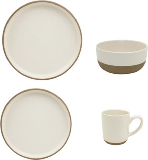 - Состав набора тарелка столовая обеденная (4 шт.), тарелка закусочная (десертная) (4 шт.), салатник (4 шт.), кружка (4 шт.)
