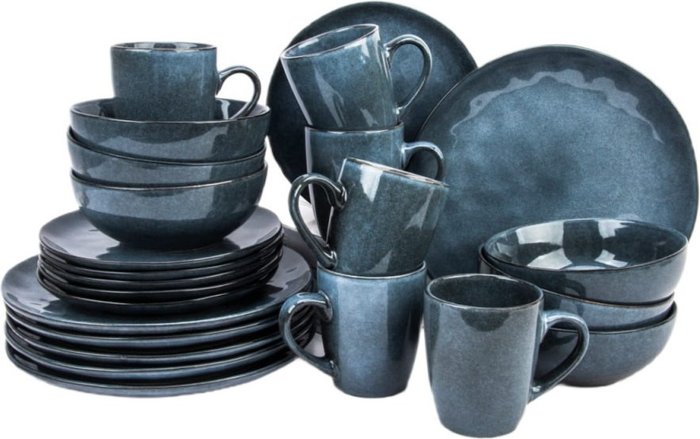 - Состав набора тарелка столовая обеденная (6 шт.), тарелка закусочная (десертная) (6 шт.), кружка (6 шт.), салатник (6 шт.)
