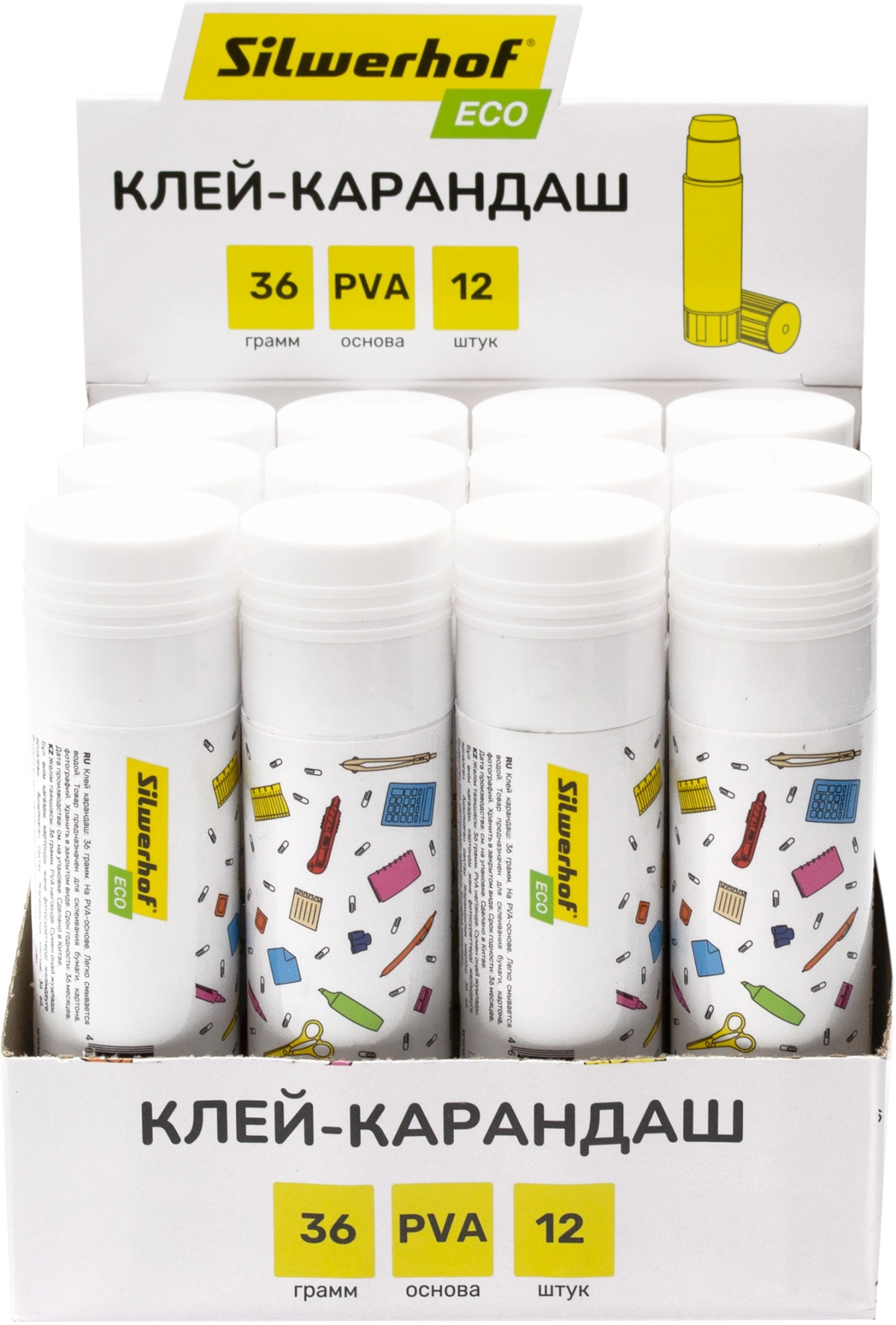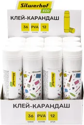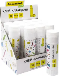 Клей-карандаш Silwerhof Eco 36гр ПВА дисплей картонный