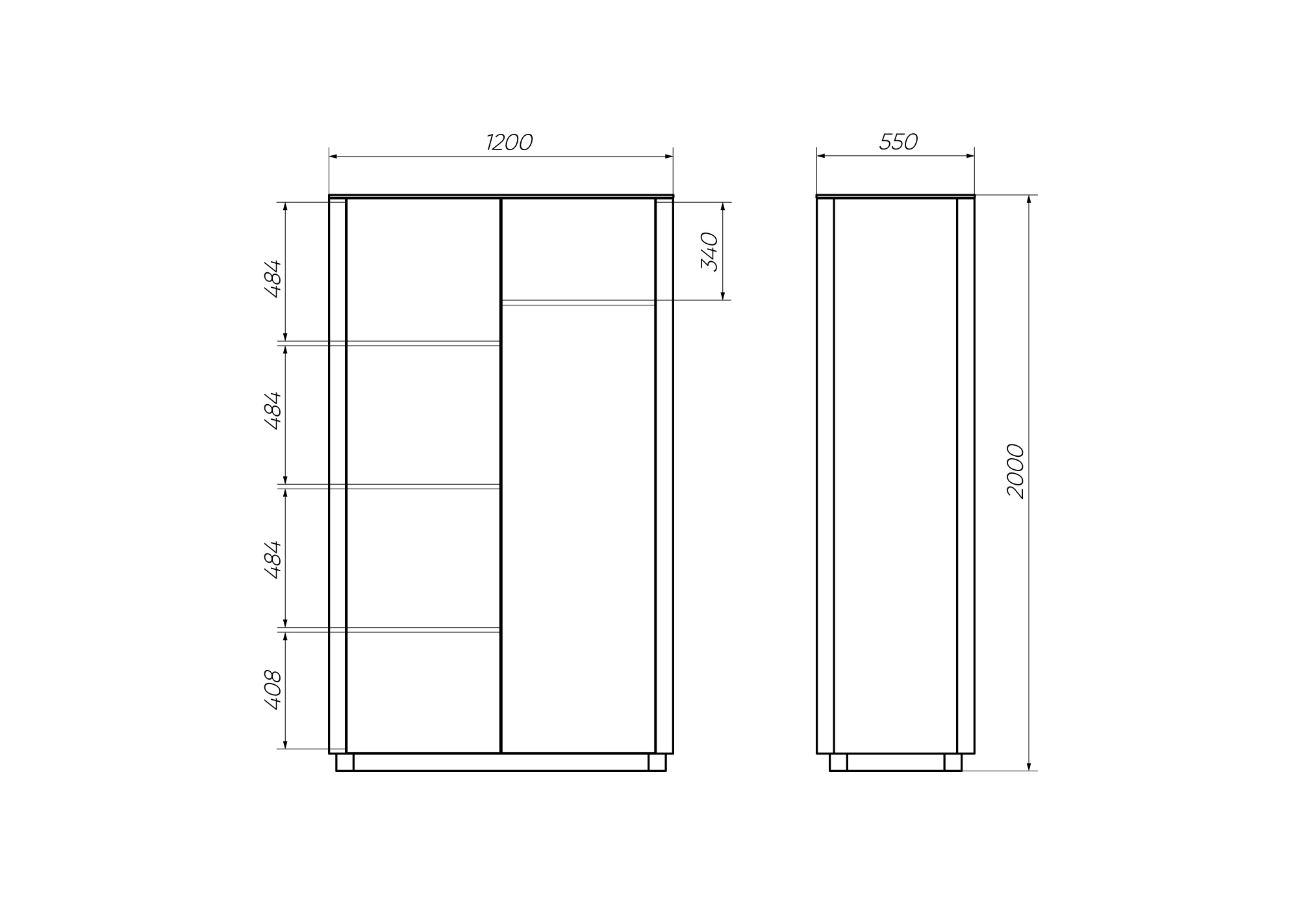 Высота: 200 см Ширина:120 см Глубина: 55 см Покрытие эмаль, NCS S 0804-Y30R Материал: бук, мдф, внутри лдсп