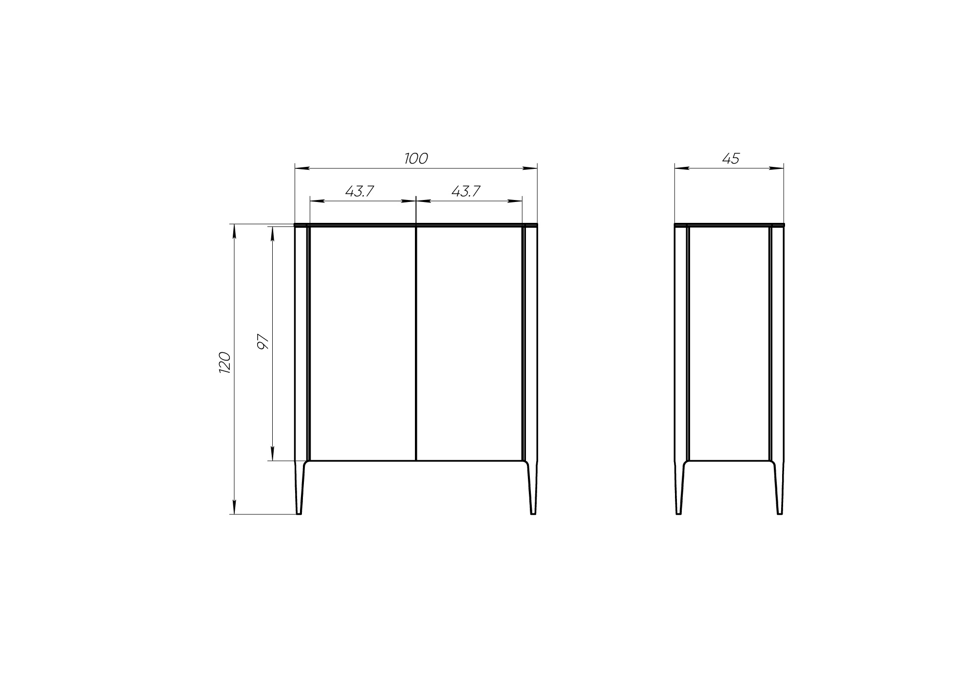 Высота: 120 см Ширина:100 см Глубина: 45 см Покрытие эмаль, RAL 7035 Материал: бук, мдф, внутри лдсп