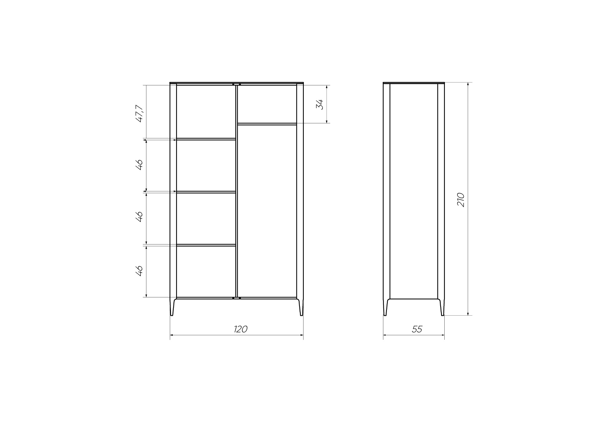 Высота: 210 см Ширина: 120 см Глубина: 55 см Покрытие эмаль, RAL 7035 Материал: бук, мдф, внутри лдсп