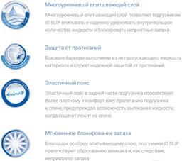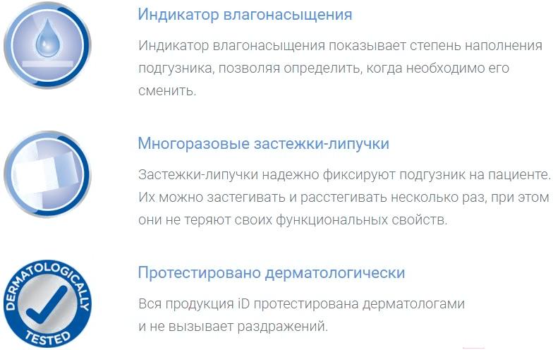 • Особенности анатомическая форма, индикатор влаги, эластичные элементы, многоразовые липучки, защита от протекания
