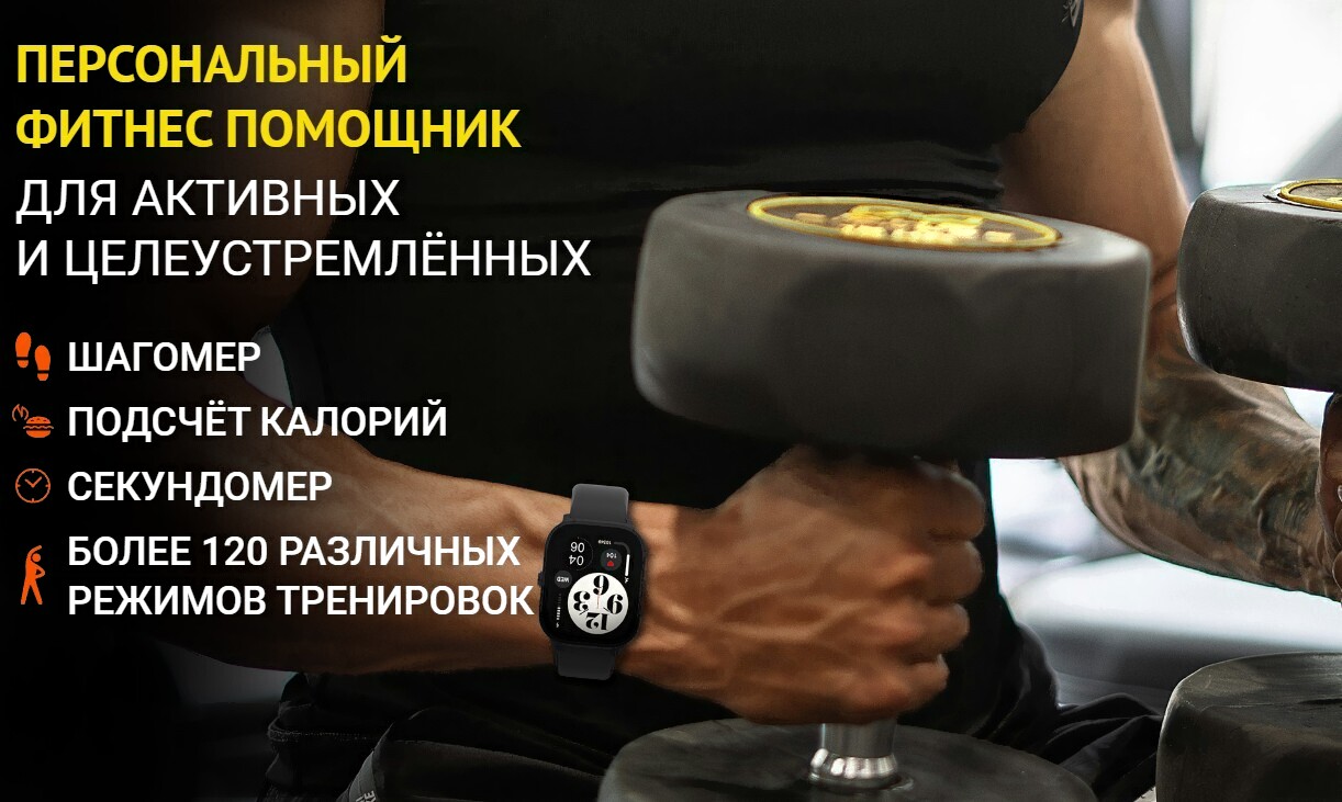 • Стандартные секундомер, погода, поиск устройства, персональный тренер, таймер, будильник