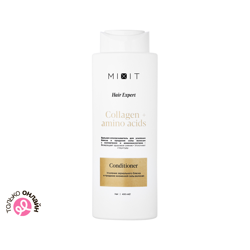 Бальзам-ополаскиватель для волос `MIXIT` `HAIR EXPERT` COLLAGEN+AMINO ACIDS для усиления блеска 400 мл