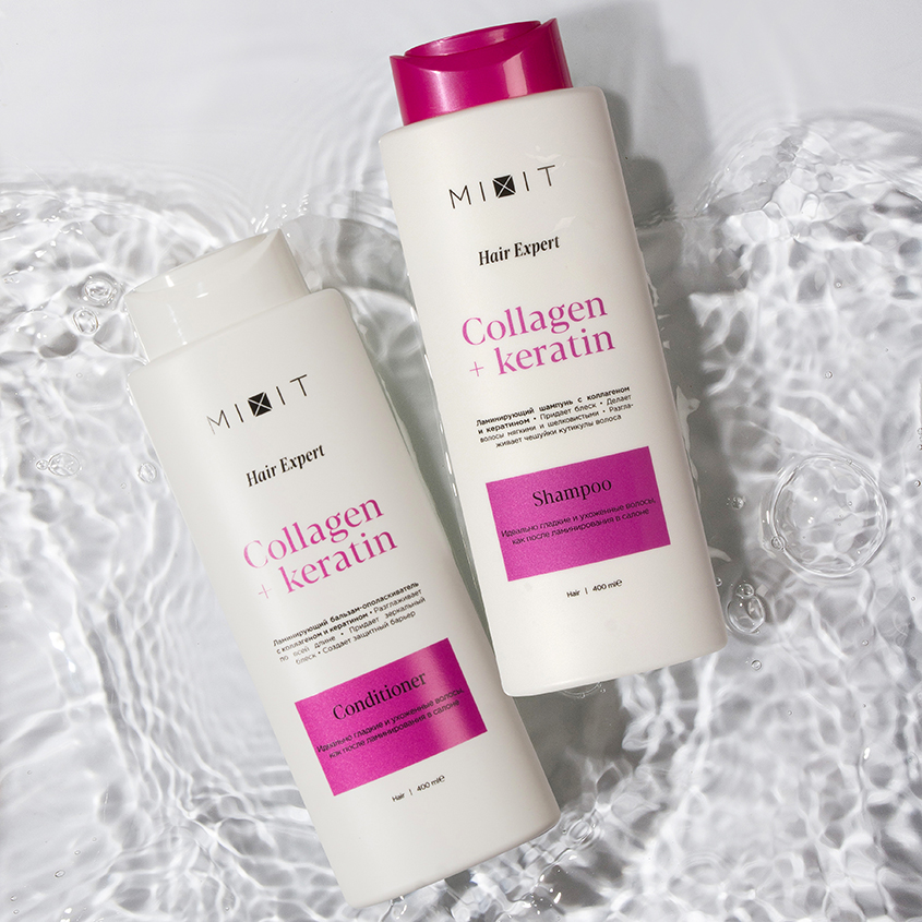 Бальзам-ополаскиватель для волос `MIXIT` `HAIR EXPERT` COLLAGEN+KERATIN ламинирующий 400 мл