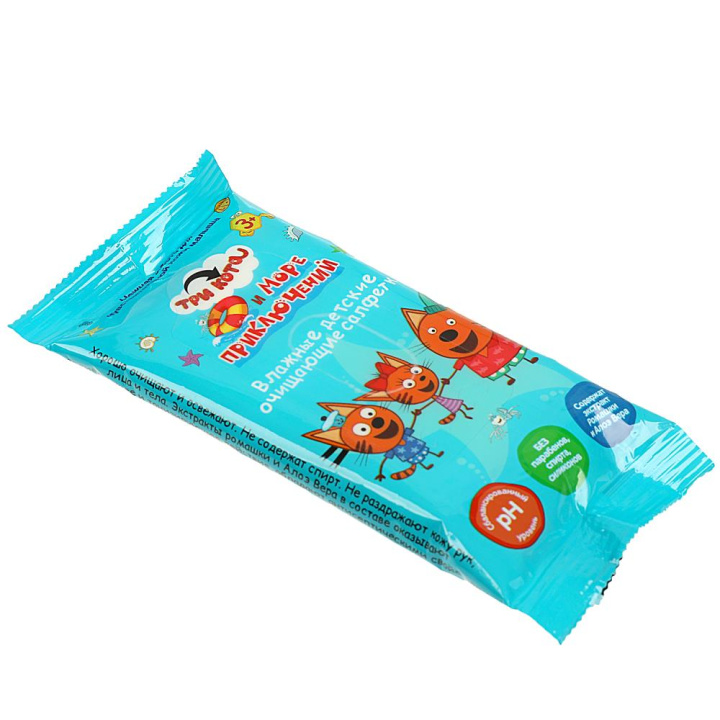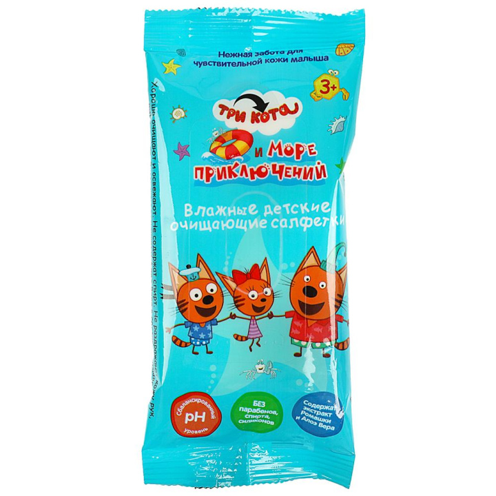 Влажные детские очищающие салфетки, Три Кота, 15 шт