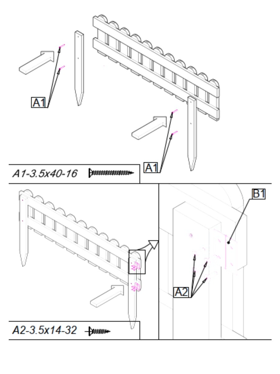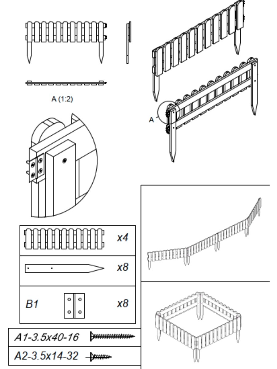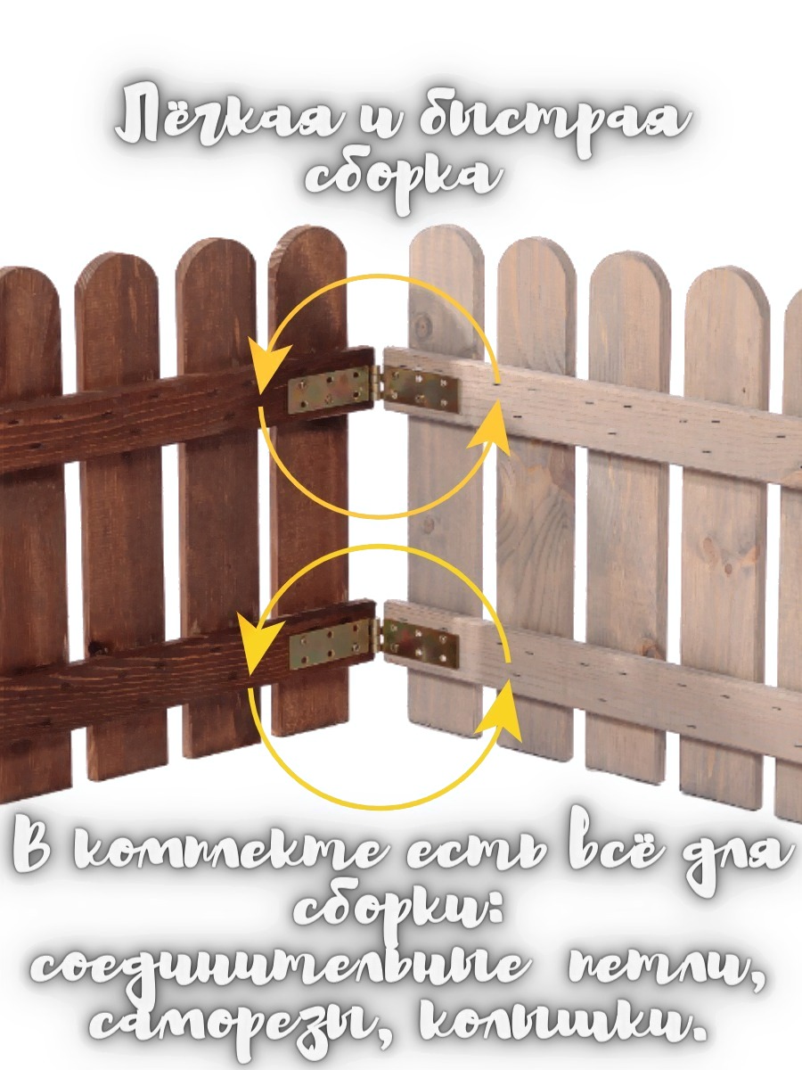 • Комплектация колышки, крепеж (саморезы), соединительный элемент (петли)
