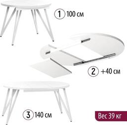 Женева 3 Л раздвижной D100-140x100x76 (белый/металл белый)