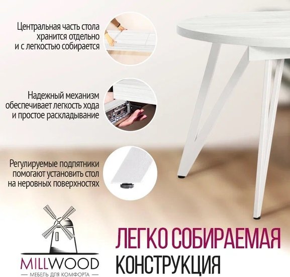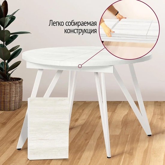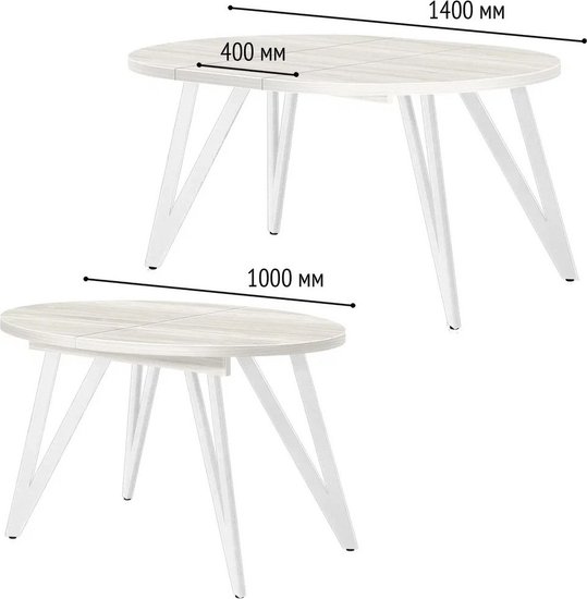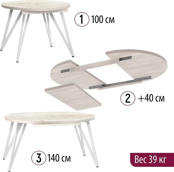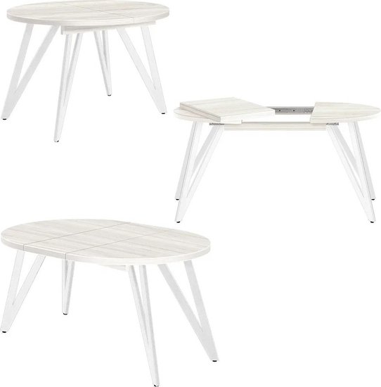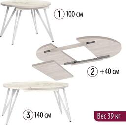 Женева 3 Л раздвижной D100-140x100x76 (дуб белый Craft/металл белый)