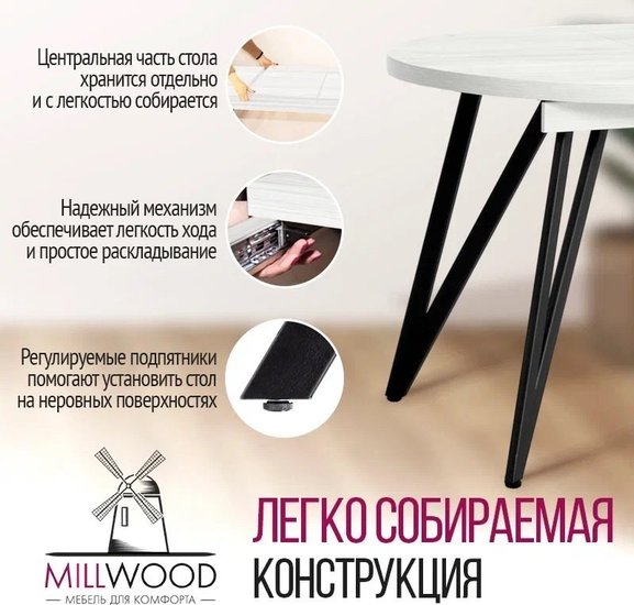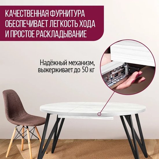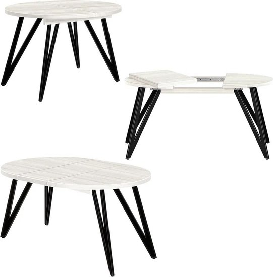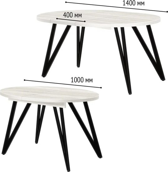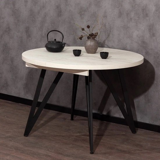 Женева 3 Л раздвижной D100-140x100x76 (дуб белый Craft/металл черный)