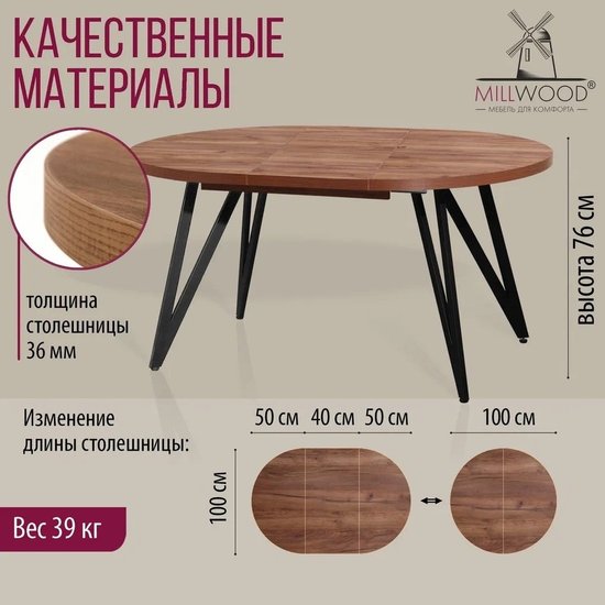 Женева 3 Л раздвижной D100-140x100x76 (дуб табачный Craft/металл черный)