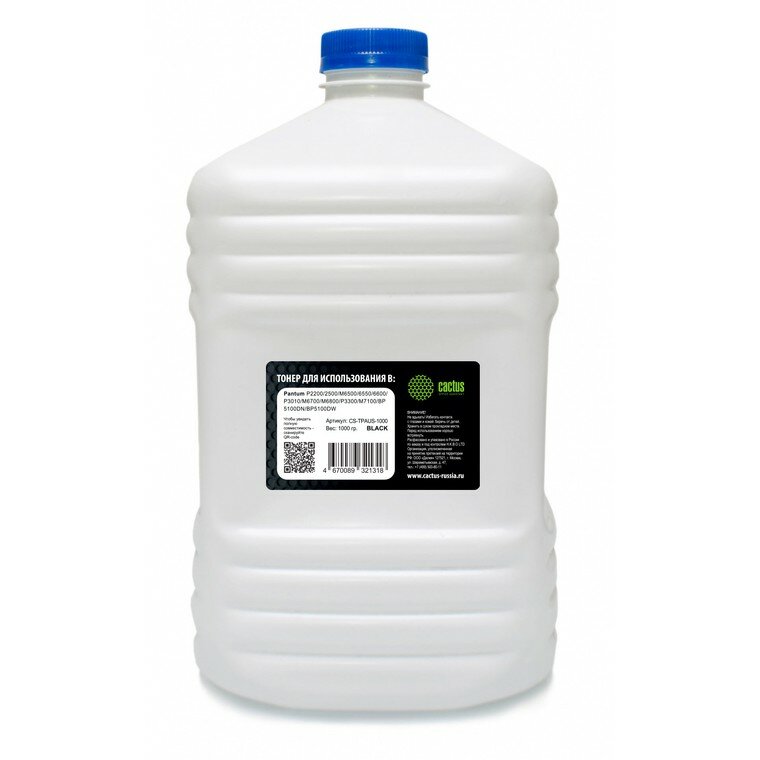 Тонер Cactus CS-TPAUS-1000 бутыль 1 кг, черный, совместимый для Pantum P2200/2500/M6500/6550/6600