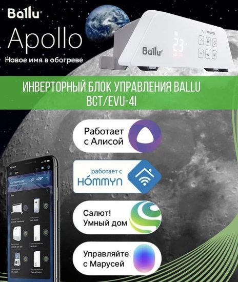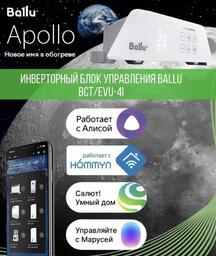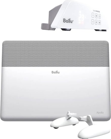 КомплектацияОтопительный модуль конвектора Ballu BEC/AT-2500; Термостат для климатической техники Ballu Transformer Digital Inverter Wi-Fi BCT/EVU-4I; Ножки для обогревателя Ballu Apollo BFT/AT