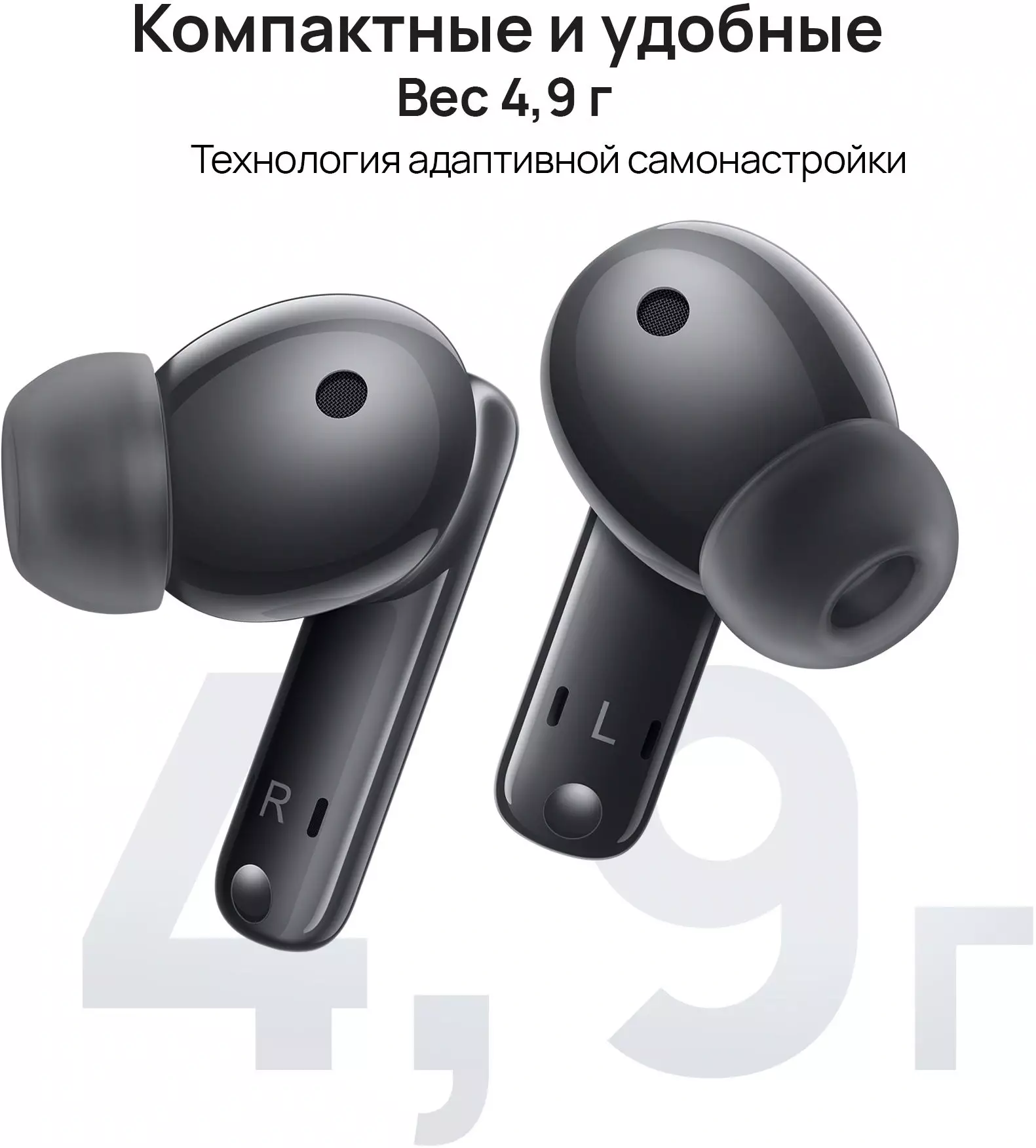 КомплектацияНаушники, Зарядный чехол, 3 пары силиконовых насадок разных размеров (большие, средние, маленькие). По умолчанию установлены насадки размера M. Кабель для зарядки USB-C. Краткое руководство (с инструкцией по технике безопасности). Гарантийный талон.
