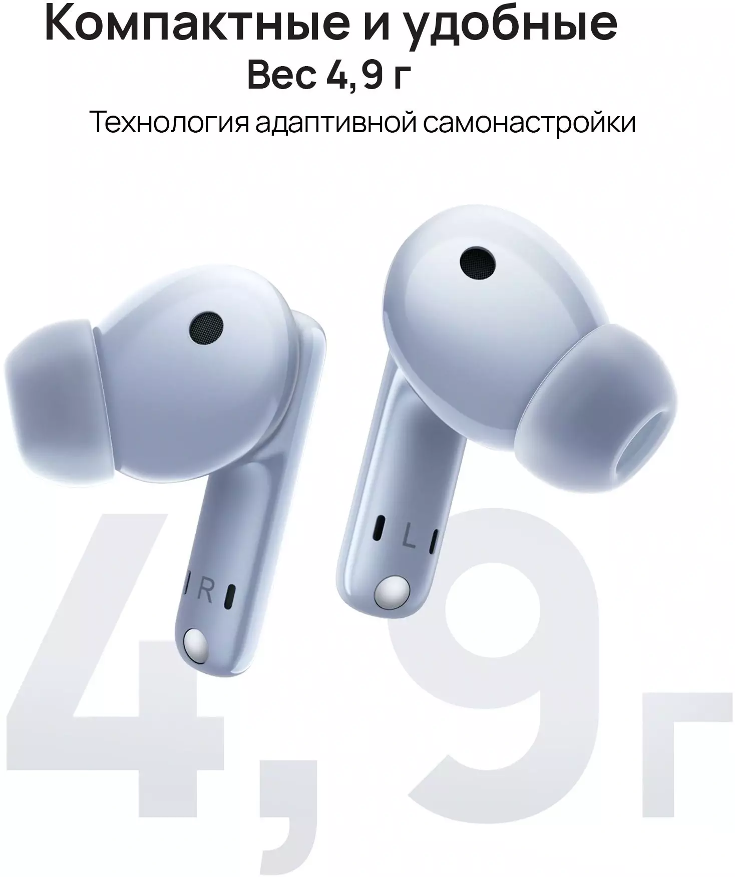 КомплектацияНаушники, Зарядный чехол, 3 пары силиконовых насадок разных размеров (большие, средние, маленькие). По умолчанию установлены насадки размера M. Кабель для зарядки USB-C. Краткое руководство (с инструкцией по технике безопасности). Гарантийный талон.