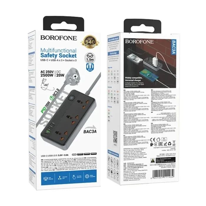 Мережевий фільтр живлення BOROFONE BAC3A (6941991111464)