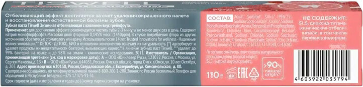 Зубная паста Tiswell Вкус грейпфрута отбеливающая с каолином (110г)
