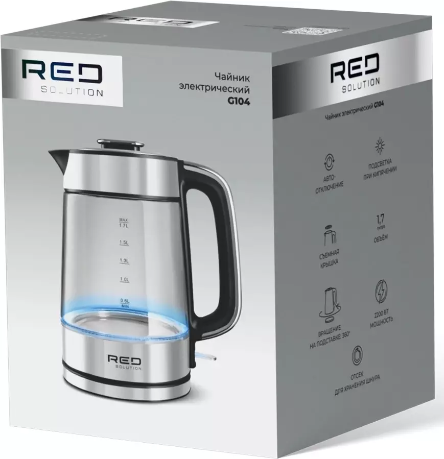 Чайник электрический Red Solution G104 черный/серебристый, нержавеющая сталь/стекло/пластик