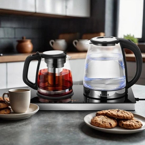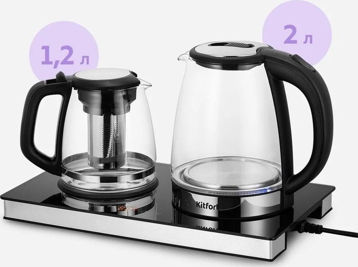 ✅ Электрический чайник Kitfort KT-6737 — это идеальное решение для любителей чая и кофе. С его помощью вы сможете быстро вскипятить воду и заварить любимый напиток, а встроенная платформа с подогревом позволит поддерживать его в теплом состоянии.✅ Заварочный чайник выполнен из термостойкого стекла и оснащён съёмным фильтром из нержавеющей стали, что делает его удобным для использования как с чаем, так и с кофе. Платформа с подогревом, расположенная на базе, обеспечивает сохранение температуры вашего напитка.✅ Корпус чайника сочетает в себе пластик и нержавеющую сталь, а внутренняя часть выполнена из стекла. Пластиковая крышка с металлическими вставками и удобная ручка, которая не нагревается, делают использование чайника комфортным и безопасным.✅ Kitfort KT-6737 предлагает два режима работы: «Чай» и «Кофе». В режиме «Чай» вы можете установить температуру подогрева от 75 до 85°С (по умолчанию 80 °С), а в режиме «Кофе» — от 60 до 80 °С с шагом в 1°С.✅ Объём чайника составляет 2 литра, а заварочного — 1,2 литра. Центральный контакт на базе позволяет устанавливать чайник в любом положении, обеспечивая вращение на 360°. Кроме того, устройство оснащено защитой от перегрева и автоматическим отключением при отсутствии воды. ⚠️ Это делает его не только функциональным, но и безопасным в использовании.✅ Электрический чайник Kitfort KT-6737 — это идеальное решение для любителей чая и кофе. С его помощью вы сможете быстро вскипятить воду и заварить любимый напиток, а встроенная платформа с подогревом позволит поддерживать его в теплом состоянии.✅ Заварочный чайник выполнен из термостойкого стекла и оснащён съёмным фильтром из нержавеющей стали, что делает его удобным для использования как с чаем, так и с кофе. Платформа с подогревом, расположенная на базе, обеспечивает сохранение температуры вашего напитка.✅ Корпус чайника сочетает в себе пластик и нержавеющую сталь, а внутренняя часть выполнена из стекла. Пластиковая крышка с металлическими вставками и удобная ручка, которая не нагревается, делают использование чайника комфортным и безопасным.✅ Kitfort KT-6737 предлагает два режима работы: «Чай» и «Кофе». В режиме «Чай» вы можете установить температуру подогрева от 75 до 85°С (по умолчанию 80 °С), а в режиме «Кофе» — от 60 до 80 °С с шагом в 1°С.✅ Объём чайника составляет 2 литра, а заварочного — 1,2 литра. Центральный контакт на базе позволяет устанавливать чайник в любом положении, обеспечивая вращение на 360°. Кроме того, устройство оснащено защитой от перегрева и автоматическим отключением при отсутствии воды. ⚠️ Это делает его не только функциональным, но и безопасным в использовании.