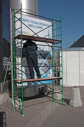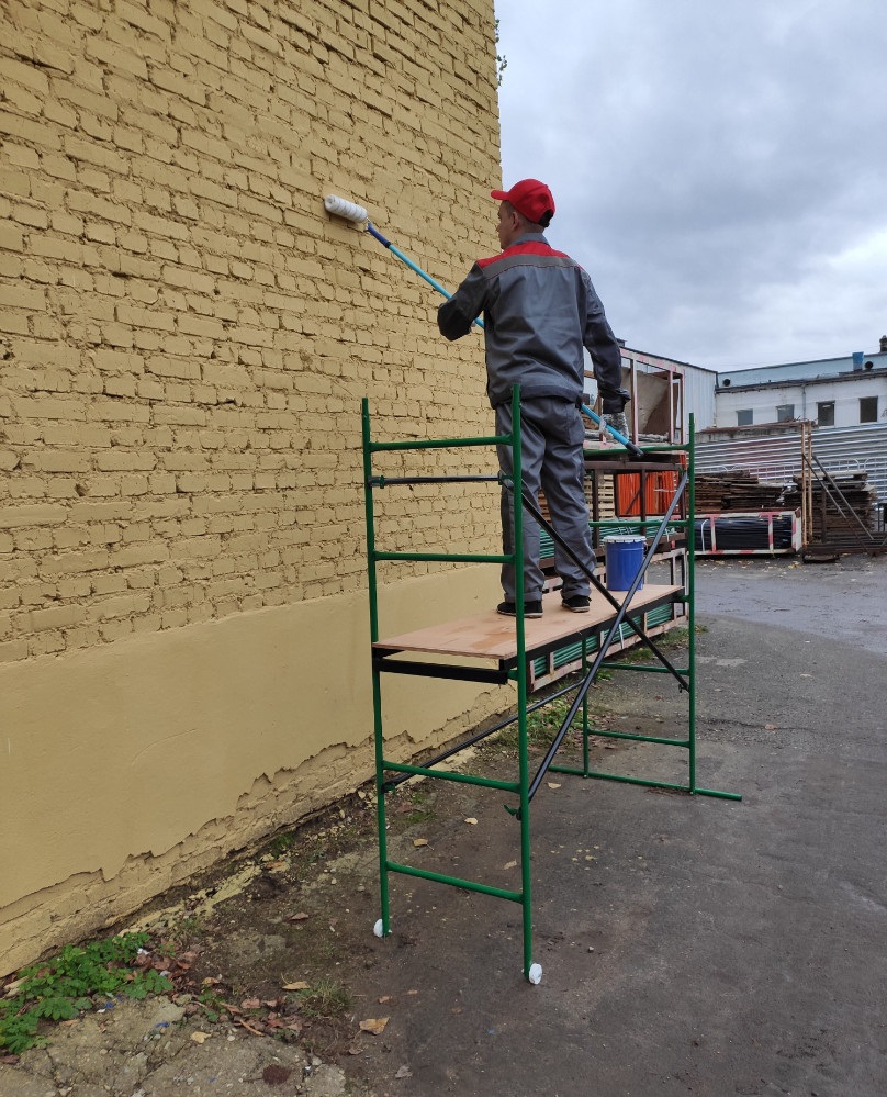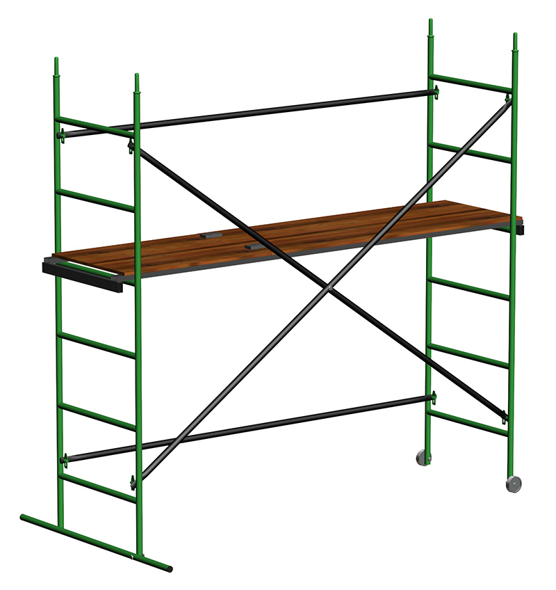подмости изготовлены из тонкостенной стали с полимерным порошковым покрытием, что делает их достаточно легкими;