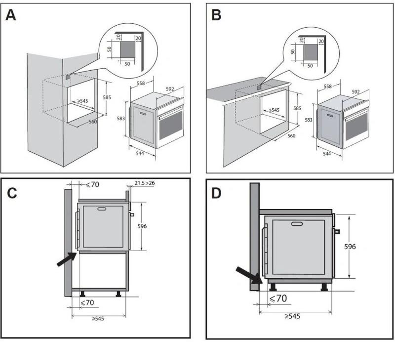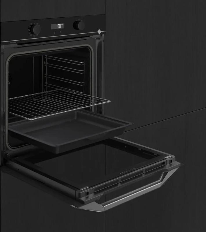 Особенности дизайна и внешней панели управления — также важный пункт при выборе духовки на кухню. В данной модели нужно обратить внимание на цвет — черный, охлаждение двери, чтобы поверхность и мебель вокруг не нагревались.