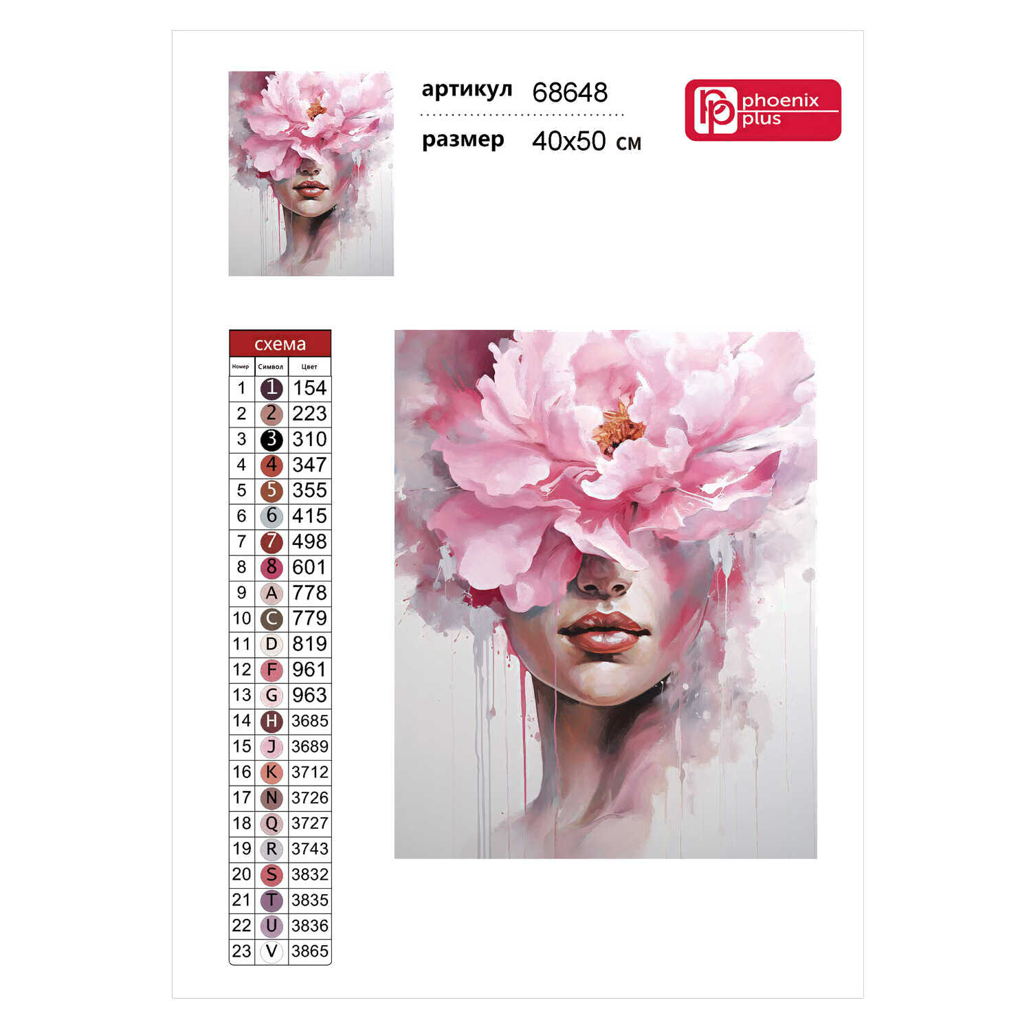 Набор алмазной вышивки Феникс+ Девушка-пион / 68648