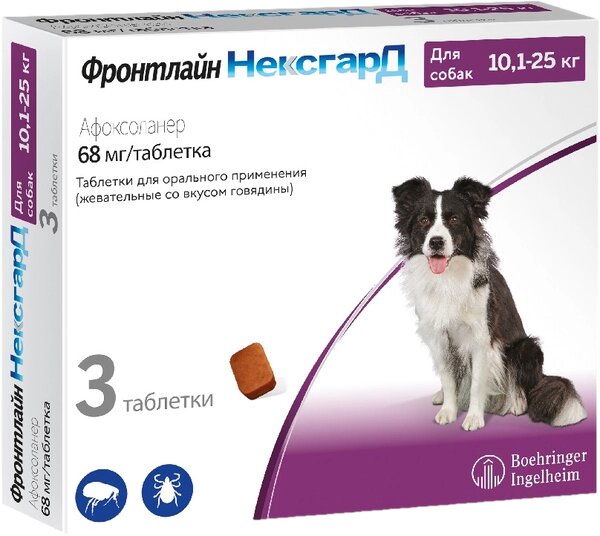 Таблетки от паразитов MERIAL Фронтлайн НексгарД L 68мг 10-25кг
