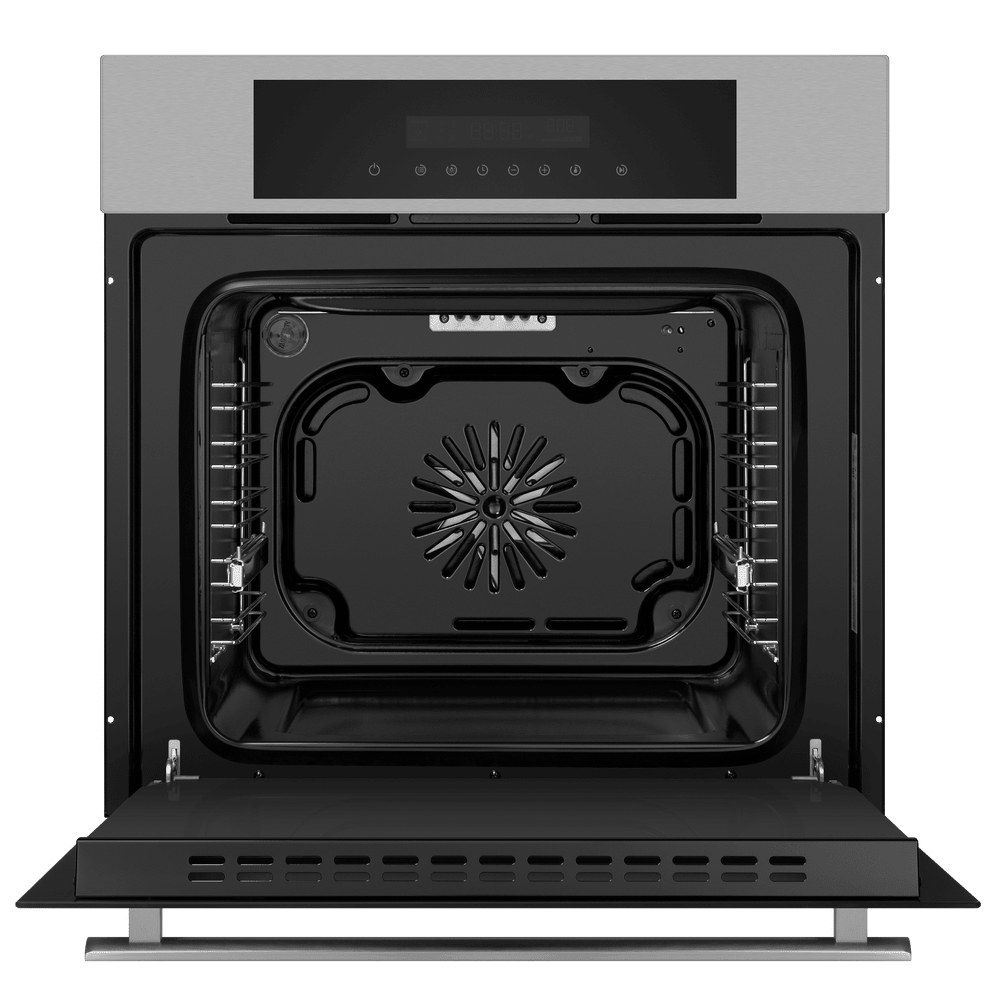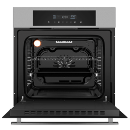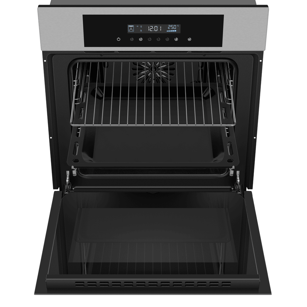 Стильный электрический встраиваемый духовой шкаф обладает большой вместительностью и новейшие функциональные возможности для достижения лучших результатов в приготовлении блюд.Объем 60 л при стандартных размерах 60 см позволяет готовить одновременно несколько блюд, разместив решетку или противень на одном из 5 уровней боковых направляющих.