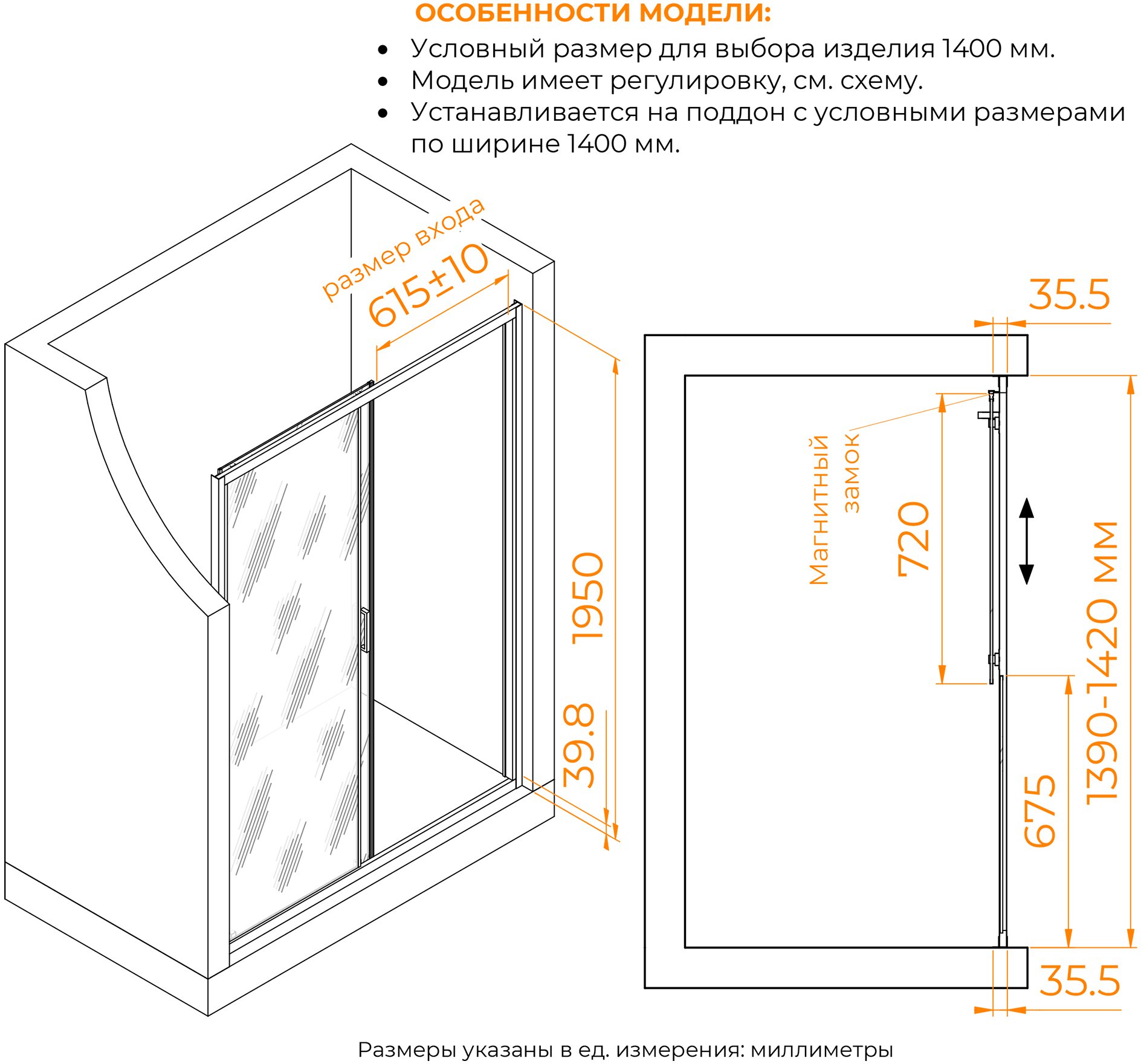 душевая дверь rgw classik cl-13 140x195 стекло cora / профиль хром