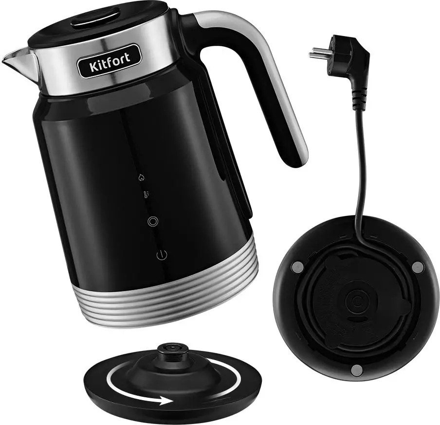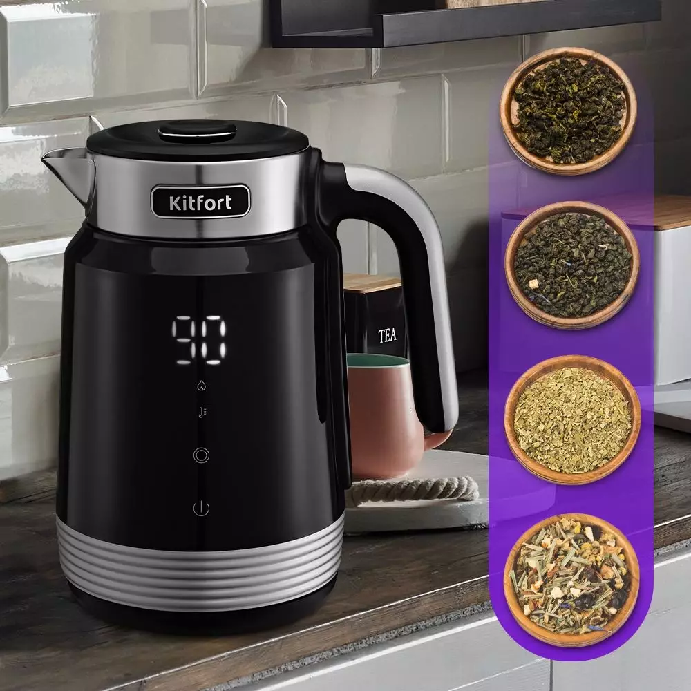 ОписаниеЭлектрический чайник с электронным терморегулятором Kitfort КТ-6648 может не только вскипятить воду, но и нагреть её до температуры 40, 55, 80 или 90 °С, что очень удобно при заваривании различных сортов чая.