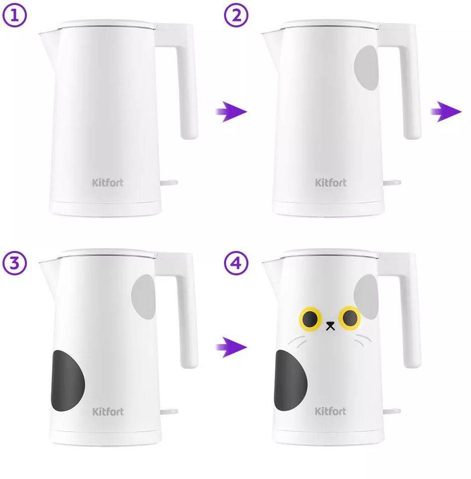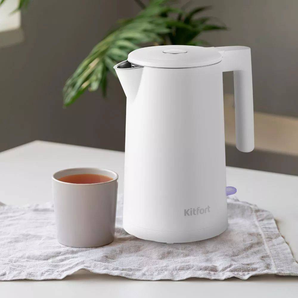 Чайник электрический Kitfort КТ-6185 белый, металл/пластик