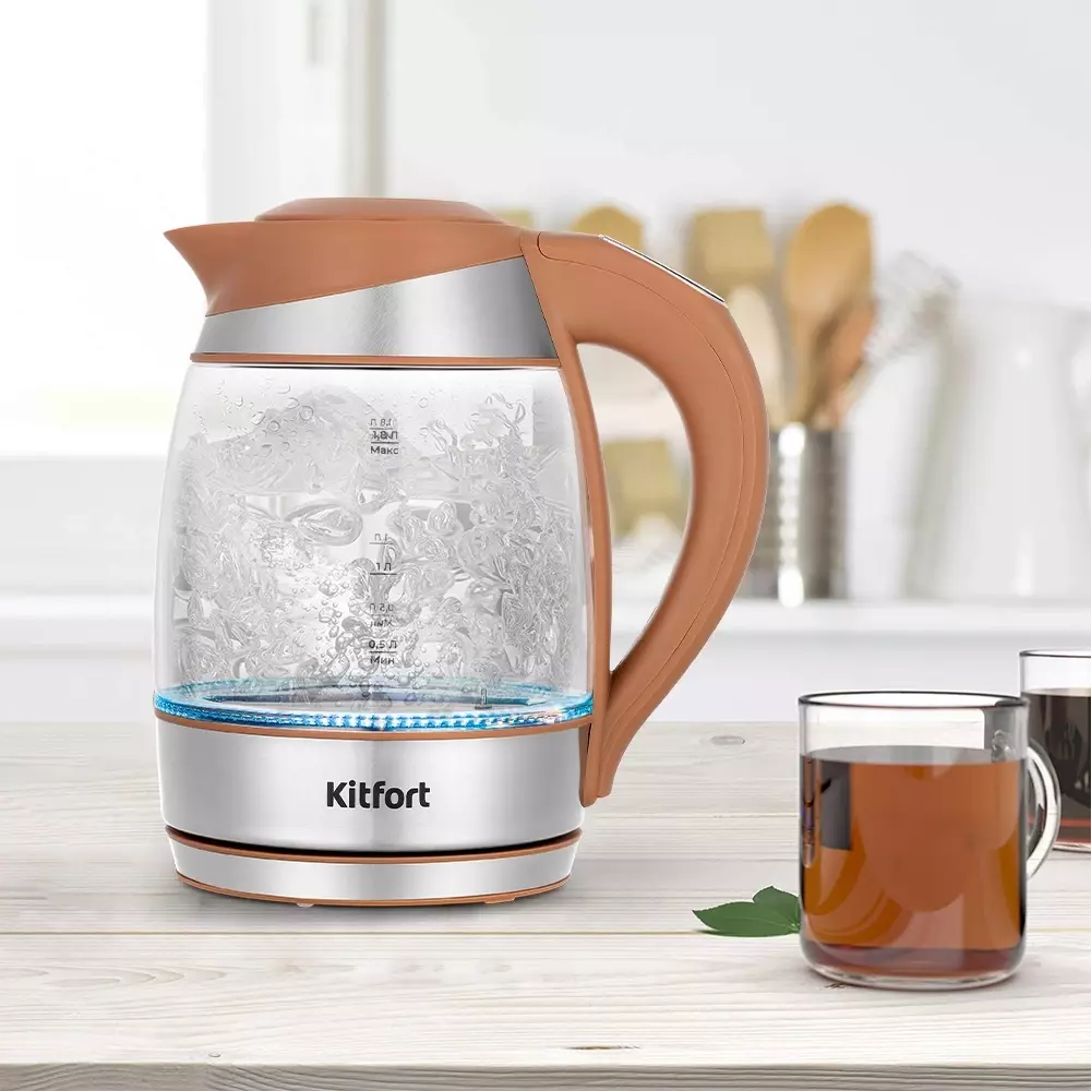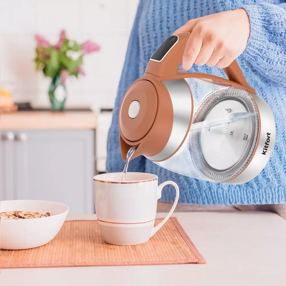 ОписаниеЭлектрический чайник Kitfort КТ-6661 может не только вскипятить воду, но и нагреть её от 40 до 90°С с шагом 10 °С, что очень удобно при заваривании различных сортов чая. Температура воды контролируется встроенным в дно чайника термодатчиком.