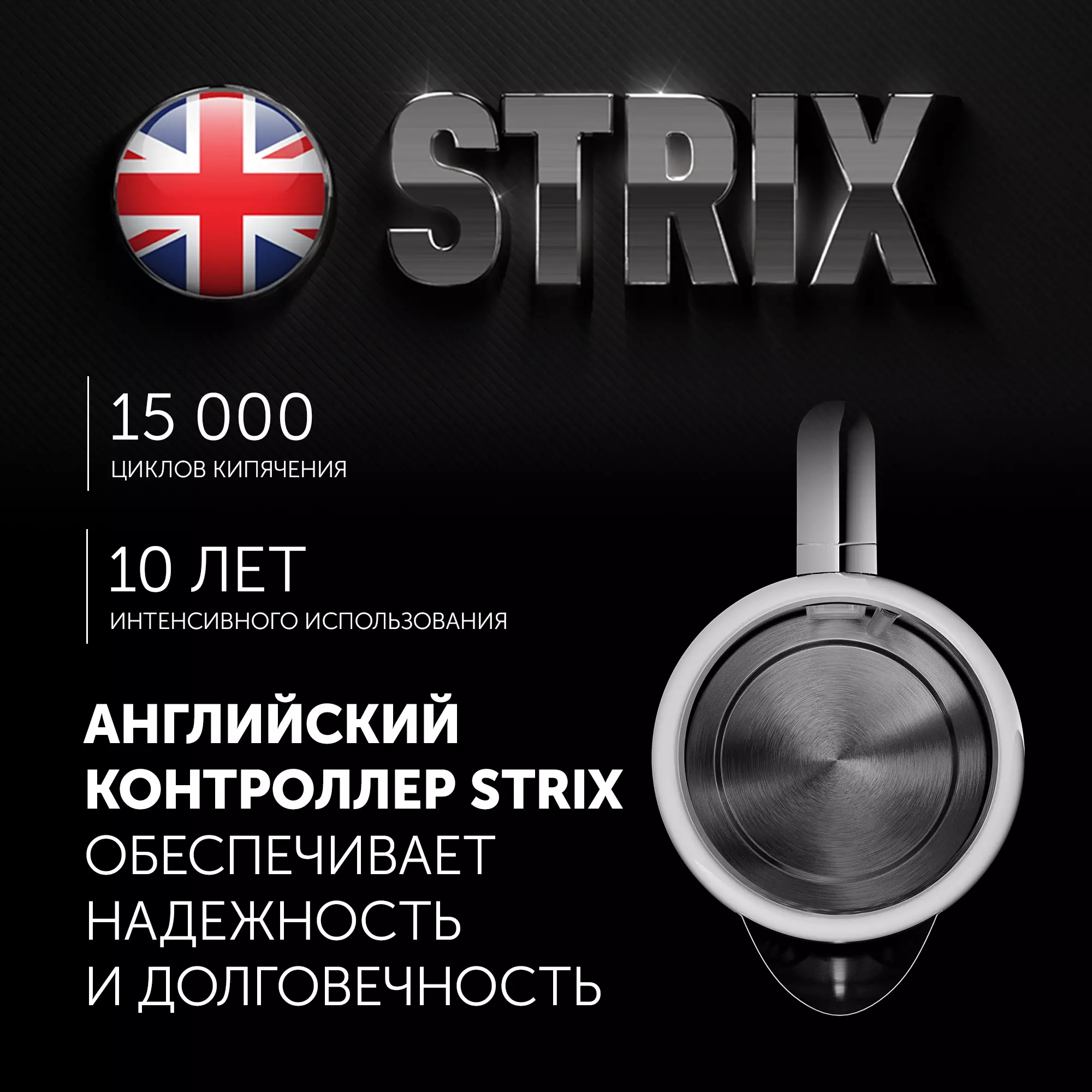 ОписаниеЗапатентованная технология залива воды “WATERWAY PRO” для удобного верхнего залива воды в чайник без открытия крышки. Безупречно спроектированная съемная крышка для максимально удобной очистки чайника. Английский контроллер Strix обеспечивает 15 000 циклов кипячения.