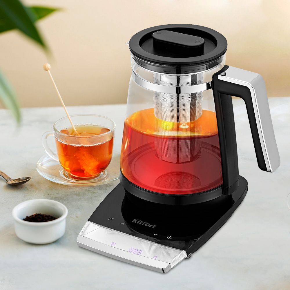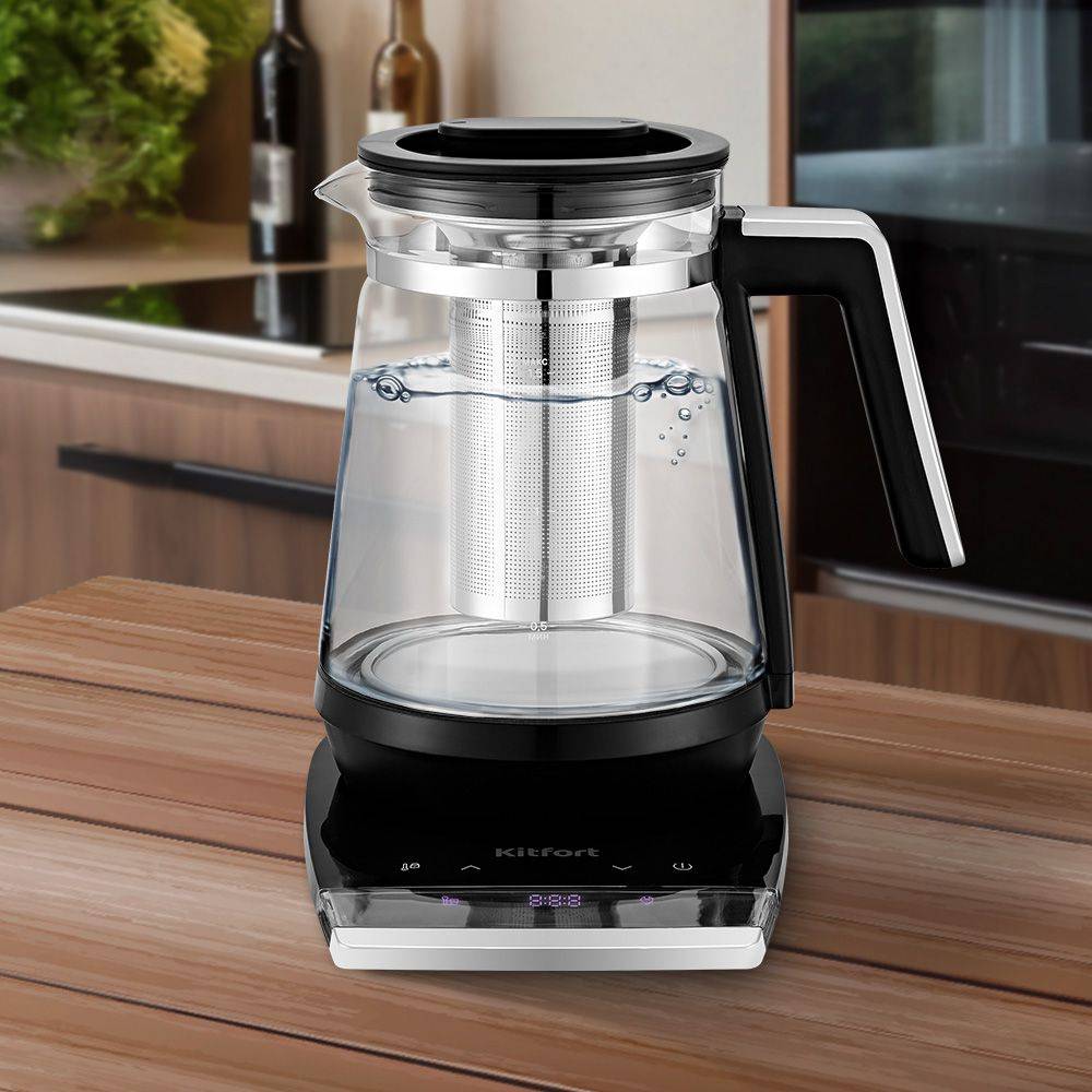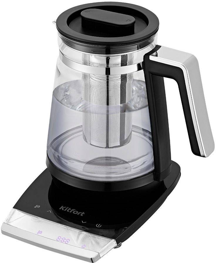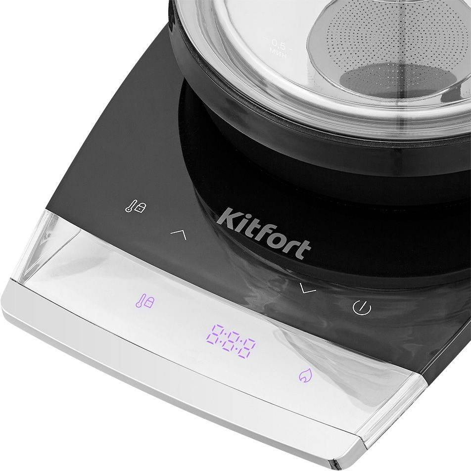 Чайник электрический Kitfort КТ-6187 черный/серебристый, стекло/металл/пластик