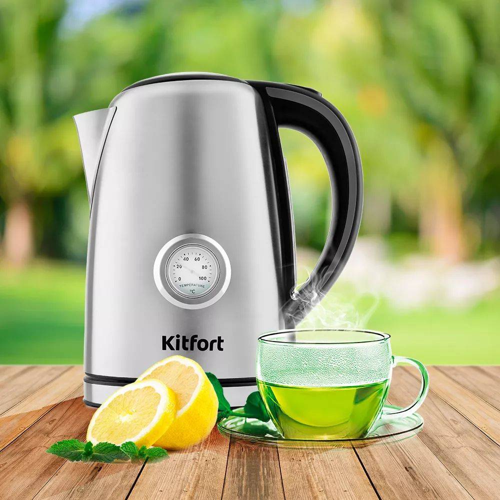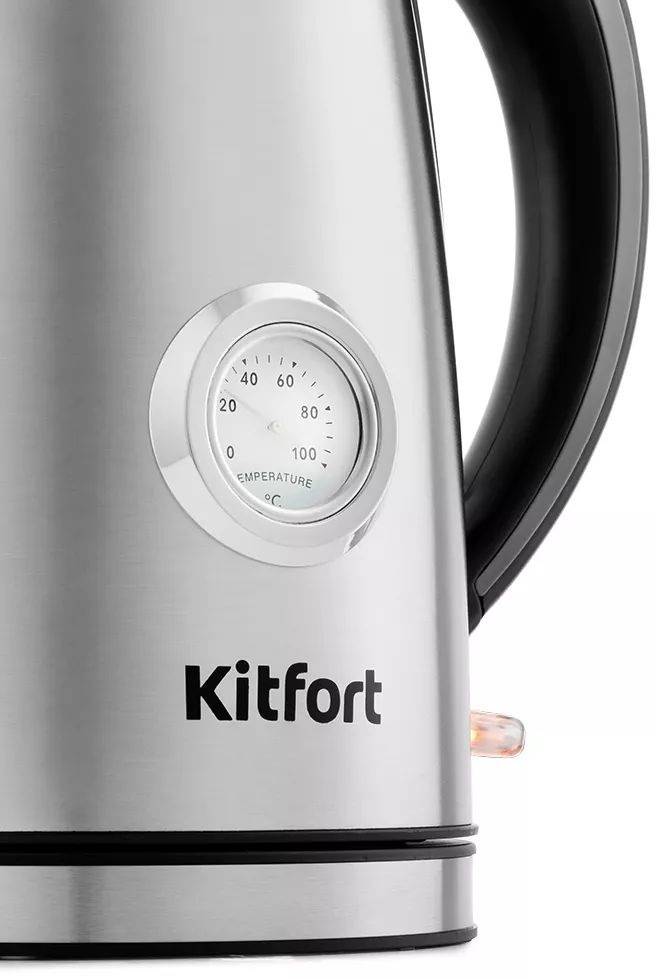 ОсобенностиНа корпусе чайника Kitfort KT-676 расположен термометр, который показывает температуру воды. Это удобно, если вы готовите напитки, для которых требуются определенная температура воды, например, зеленый чай, белый чай, кофе и т. д.