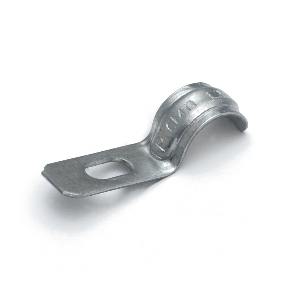 Скоба металлическая однолапковая усиленная противопожарная (СМОУ), предназначена для крепления металлорукава, металлических и пластиковых труб к различным несущим поверхностям, а также для монтажа кабельной продукции. Изготавливается с овальным отверстиями 10х5мм (скобы диаметром от 6 до 40мм), и 10х6мм (скобы диаметром от 48-63мм), что обеспечивает возможность установки самореза с пресс-шайбой диаметром 4,2мм. Конструкция скоб соответствует ГОСТ 17678-80. Скобы металлические изготавливаются из оцинкованной стали (по ГОСТ 14918), толщиной от 0,9 до 1,9мм. Применяются в ОКЛ.