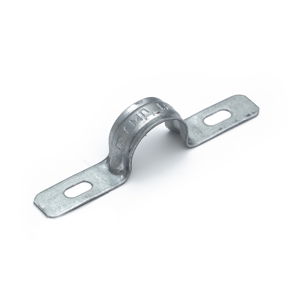 Скоба металлическая двухлапковая усиленная противопожарная (СМДУ), предназначена для крепления металлорукава, металлических и пластиковых труб к различным несущим поверхностям, а также для монтажа кабельной продукции. Изготавливается с овальным отверстиями 10х5мм (скобы диаметром от 6 до 40мм), и 10х6мм (скобы диаметром от 48-63мм), что обеспечивает возможность установки самореза с пресс-шайбой диаметром 4,2мм. Конструкция скоб соответствует ГОСТ 17678-80. Скобы металлические изготавливаются из оцинкованной стали (по ГОСТ 14918), толщиной от 0,9 до 1,9мм. Применяются в ОКЛ.