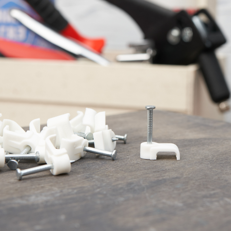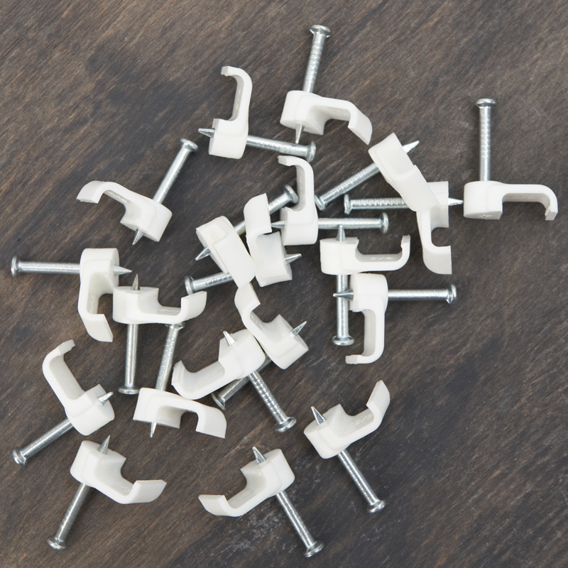 Высококачественный плоский крепеж кабеля REXANT представляет собой П-образную пластиковую скобу, выполненную из качественного пластика и идущую в комплектации с гвоздём из закаленного металла, при помощи которого данная скоба крепит к стенам, потолкам и несущим конструкциям кабели, провода.Размеры скобы (высота/ширина): 3х8 ммСкоба предназначена для плоского кабеля.В упаковке 20 шт.Цвет: белый.
