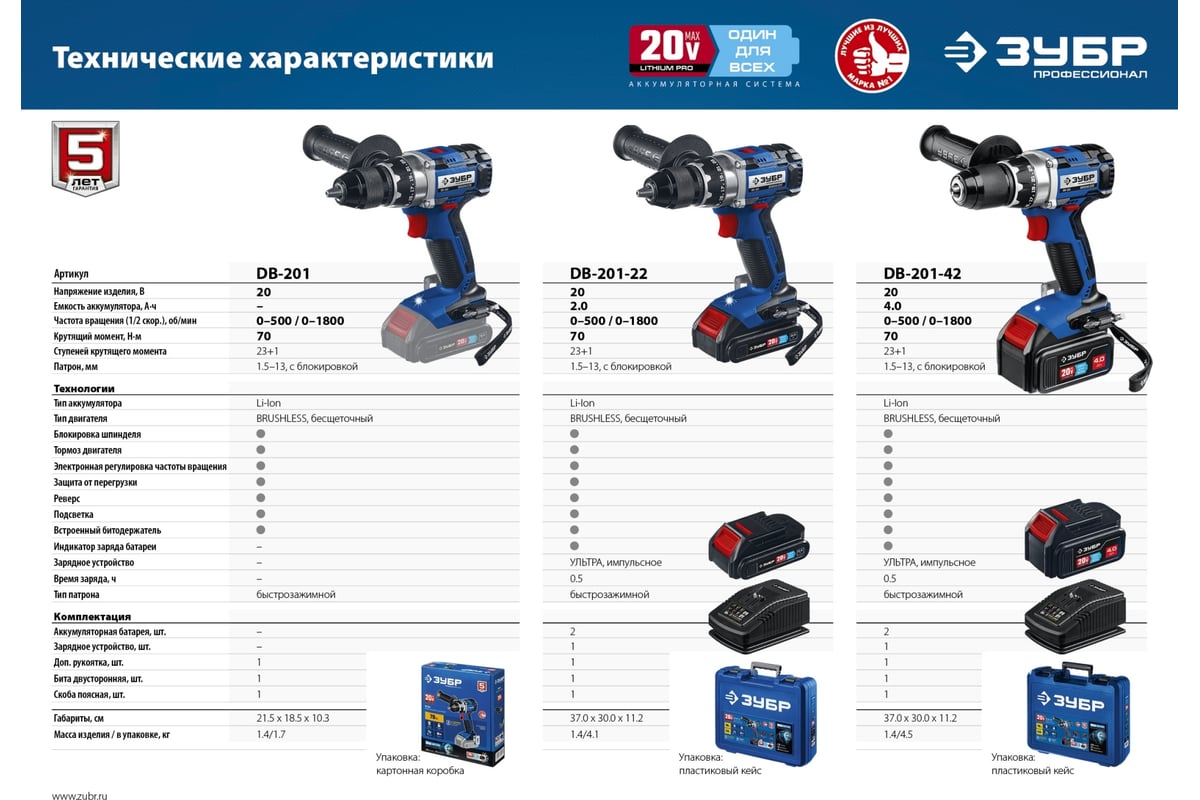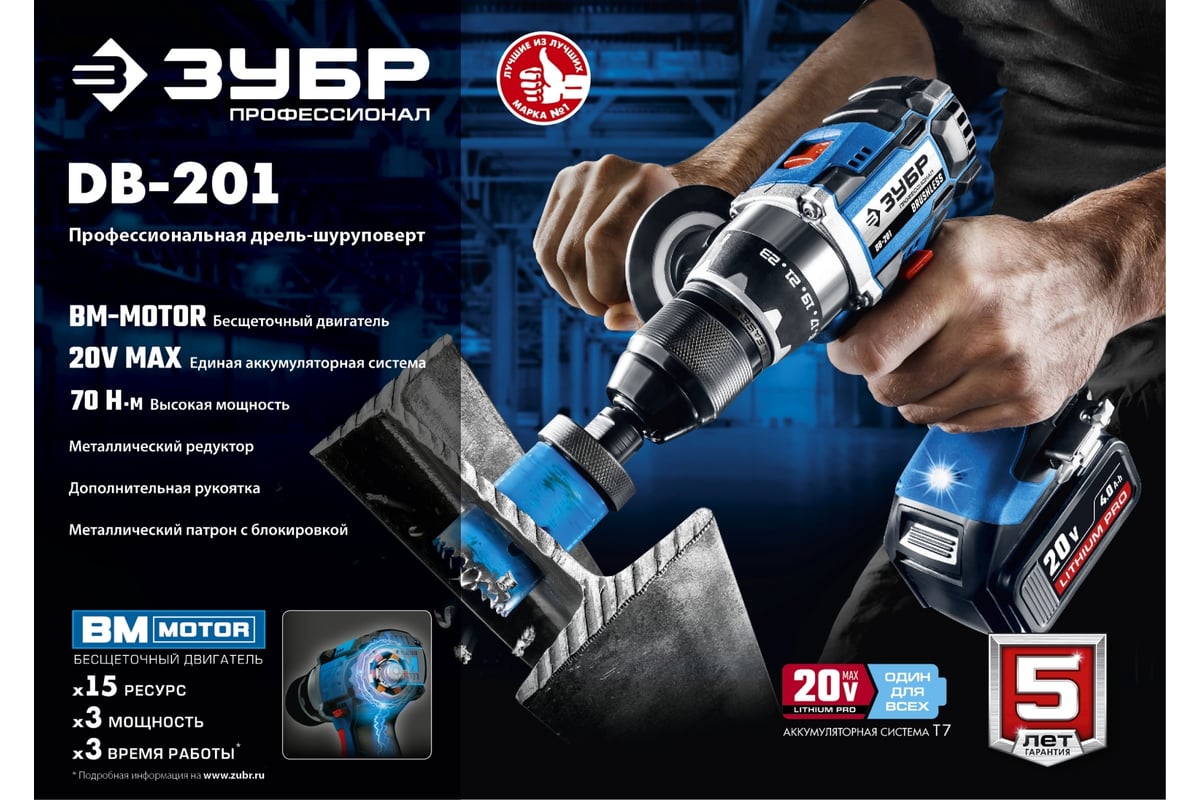 Бесщеточная дрель-шуруповерт ЗУБР Профессионал DB-201
