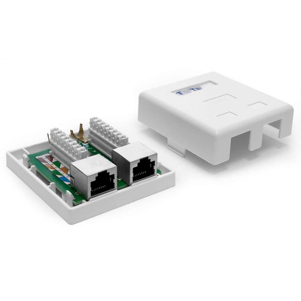 Настенная розетка, 2 порта RJ-45 категории 6, STP, белая